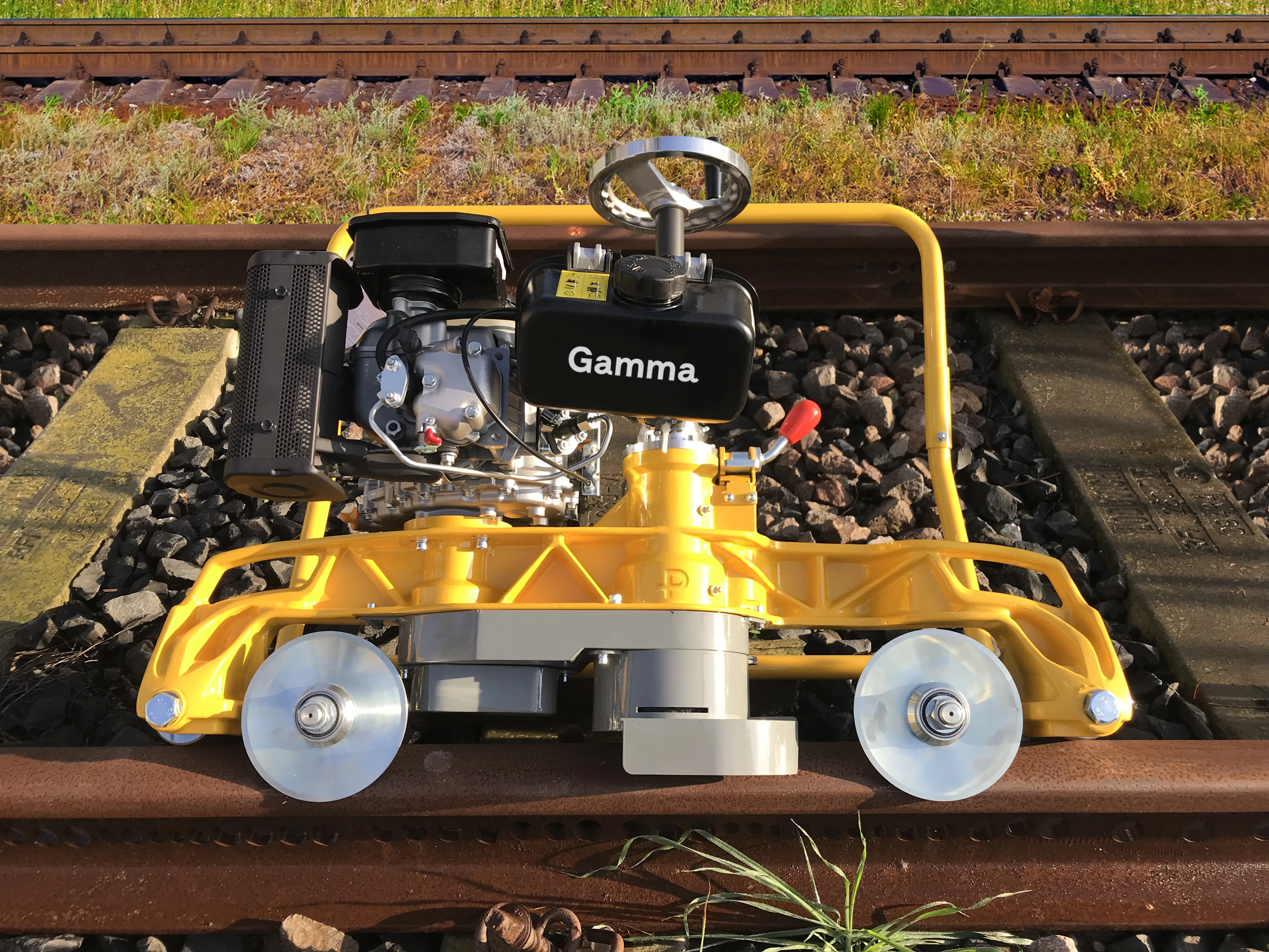 Die Gammaschleifmaschine ist für die Neuprofilierung des gesamten Schienenkopfes nach dem Schweißen ausgelegt. Sie ist mit einem Dieselmotor ausgestattet, der derart geschmiert wird, dass sie in jeder Position von 0° bis 90° arbeitet.