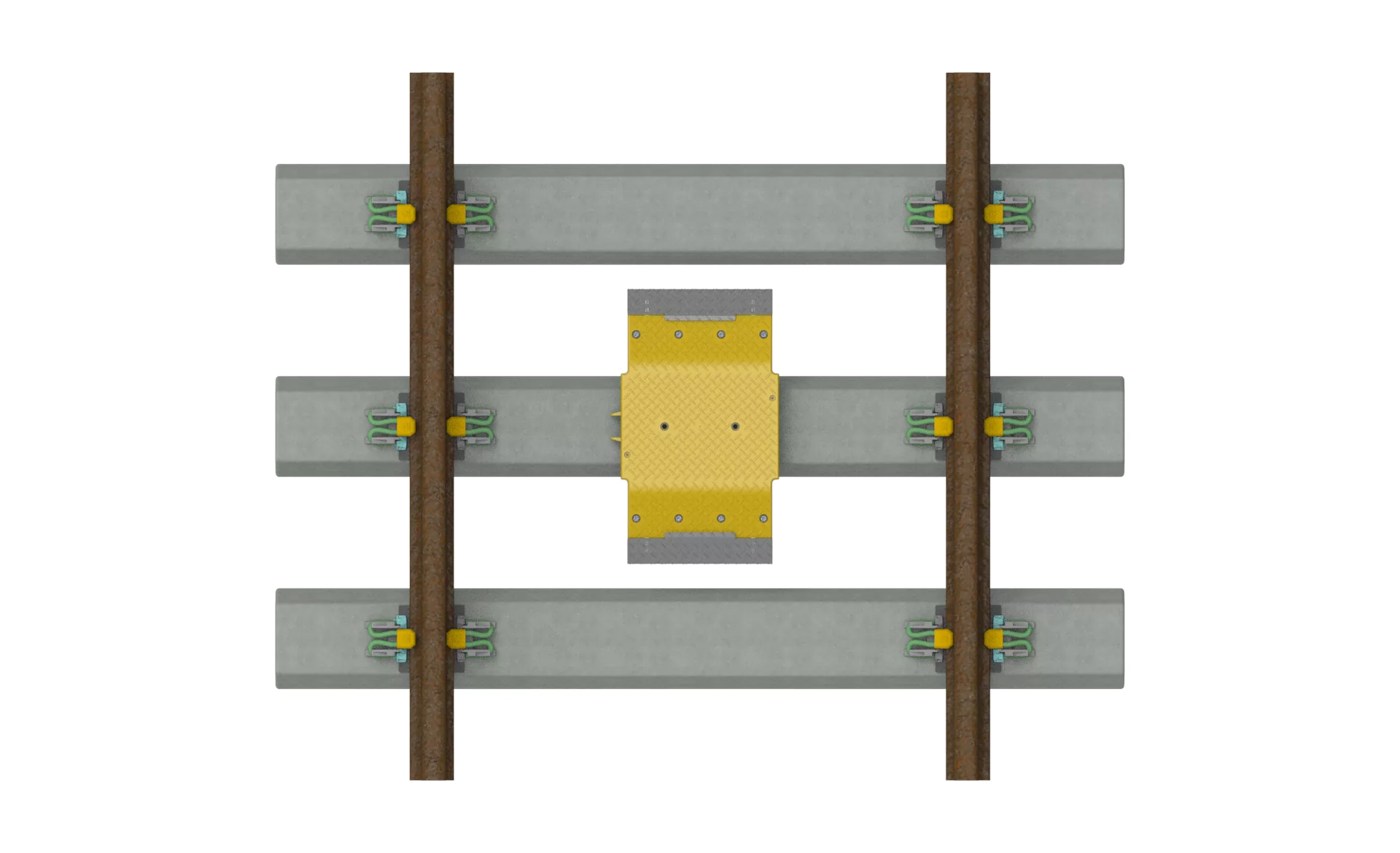 The On-Sleeper Beam is mounted over the sleeper onto the existing rail fastening, eliminating the need to drill the sleeper.