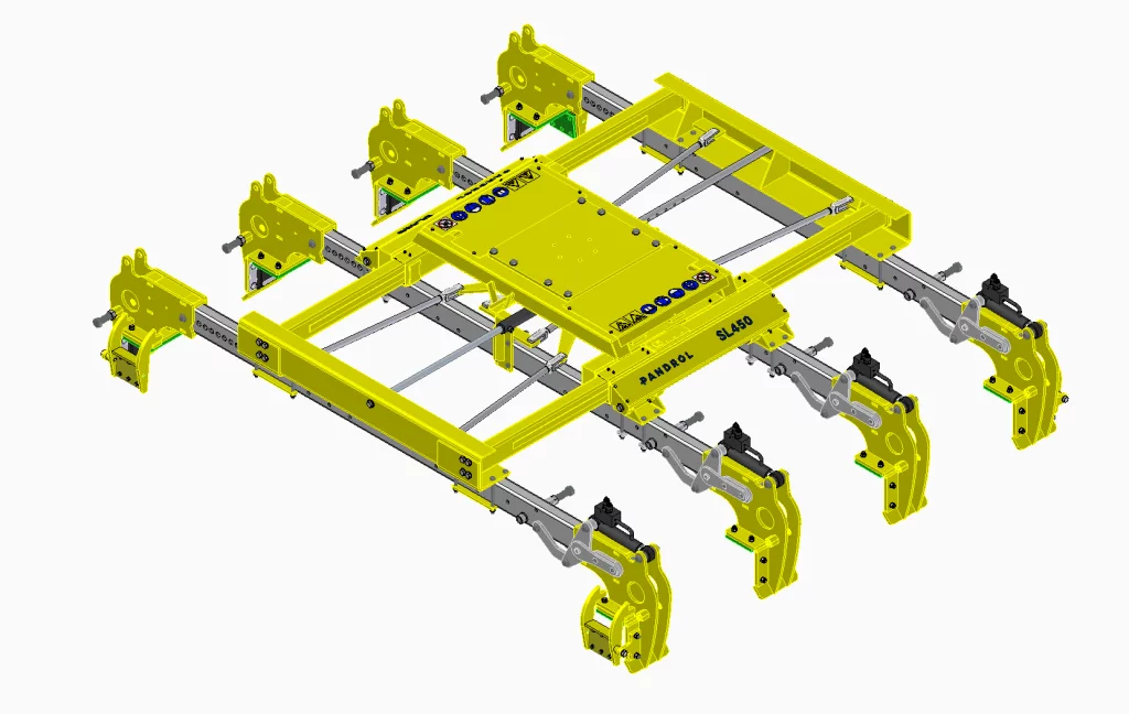 A telescopic frame makes the Sleeper Layers compact and safe to operate. A unique, patented linkage system ensures that the centre of gravity does not change during sleeper spreading.