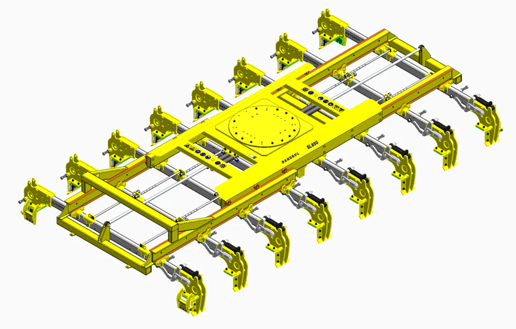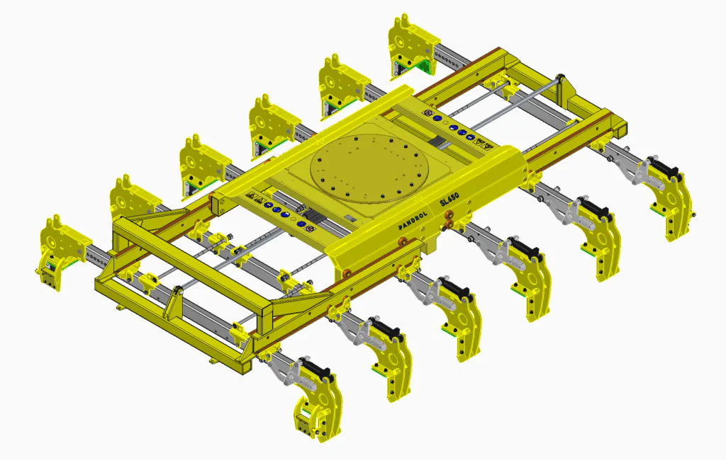 A linkage system ensures that the Sleeper Layer’s centre of gravity does not change during sleeper spreading.