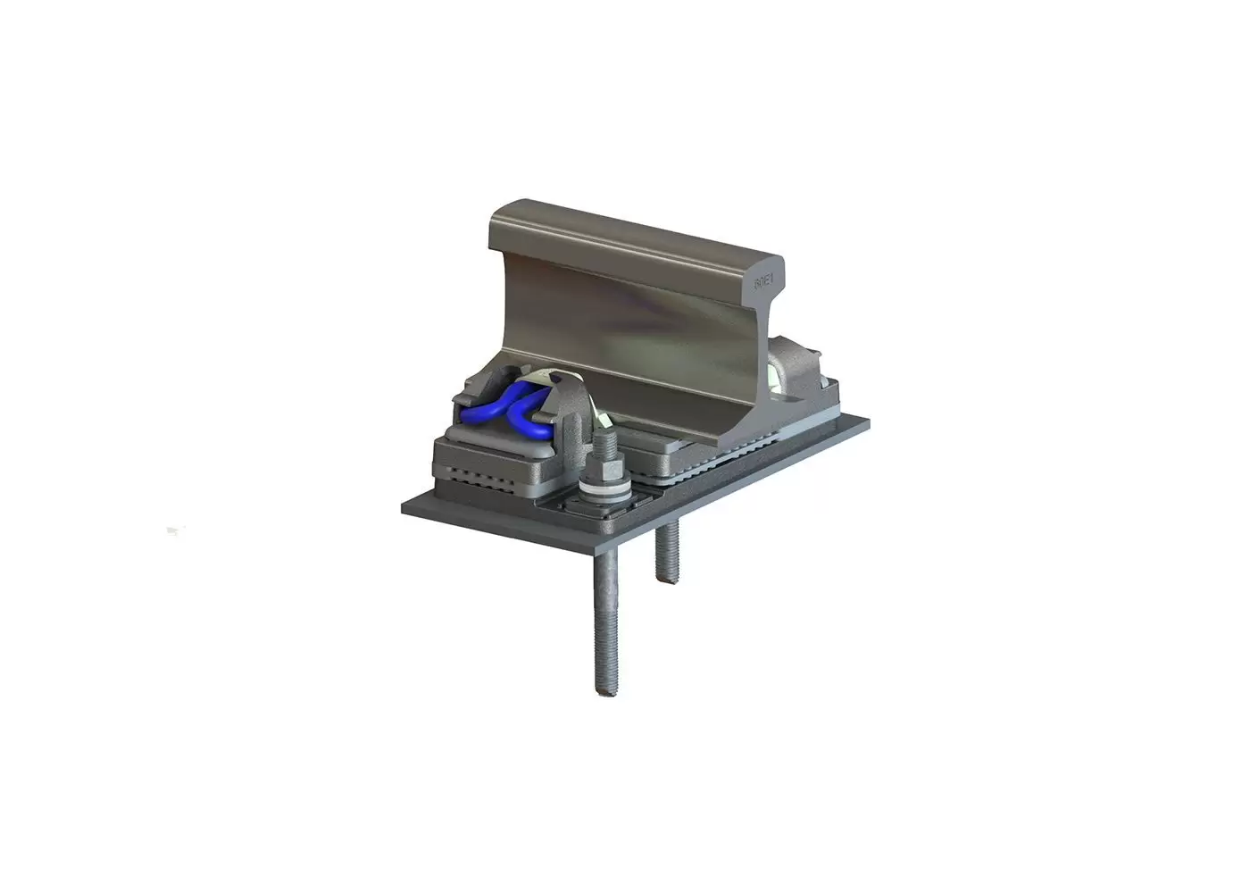 Um sistema de apoio de via resiliente desenvolvido para atenuar as vibrações induzidas por contato entre a roda e o trilho, que são transferidas do trilho para a estrutura de apoio.